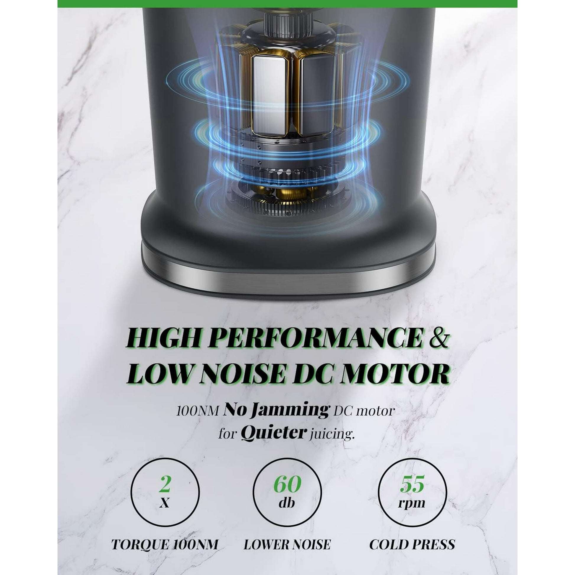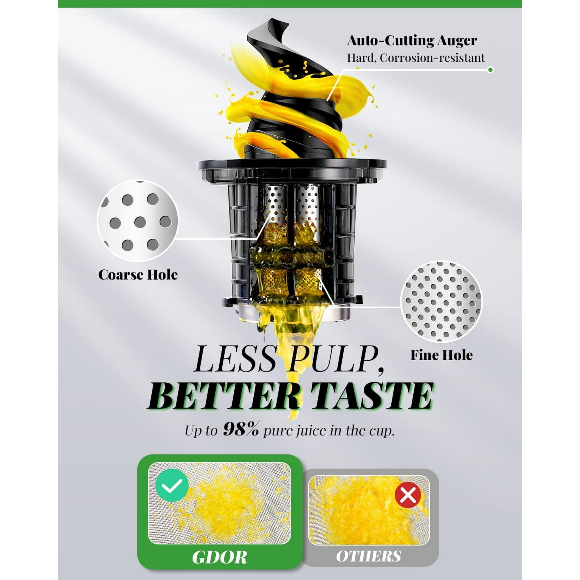GDOR Cold Press Juicer Machines, Masticating Juicer Extractor with 3.5-Inch Feed Chute, Slow Juicer With High Yield, Easy to Clean,Grey