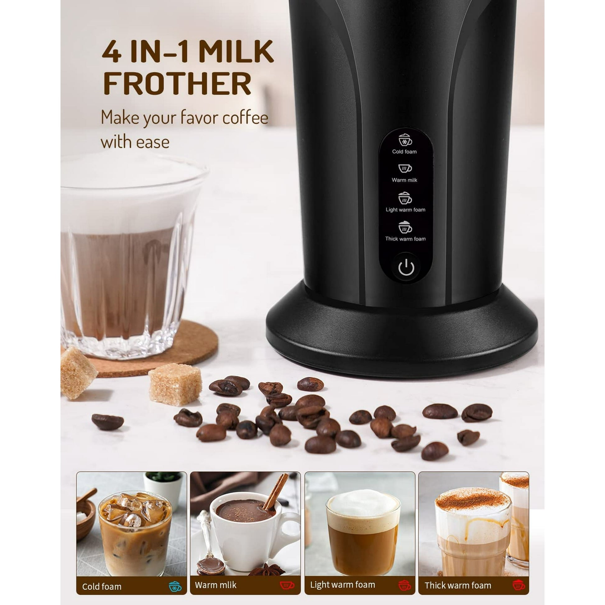 KIDISLE 4-in-1 Milk Frother and Steamer, Electric Milk Steamer with Keep Warm Function, Automatic Warm and Cold Foam Maker for Coffee, Latte, Hot Chocolate, Macchiato, Cappuccinos, Black